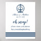 Capture every moment with this navy nautical "Oh Snap" hashtag sign featuring a classic anchor and rope monogram crest with the couple's initials. Bold calligraphy invites guests to share their photos using your custom wedding hashtag, accented by crisp navy and white stripes at the base. Perfect for coastal, beach, or nautical-themed wedding receptions. All text and monogram initials are fully customizable.