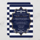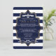 Navy Nautical, FAUX Burlap Stripes Wedding 2 Invitation