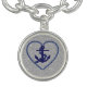 Beautiful & Stylish Silver Round Charm Bracelet Featuring Navy Nautical Heart Anchor Silver Faux Glitter Design