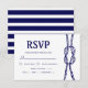 Include these modern nautical RSVP cards with your invitations for guests to accept or decline your wedding invite. Featuring a clean, minimalist look in classic navy and white colors, and an RSVP template that is easy to personalize.