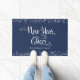 Navy New Year Cheer White Script Snowflakes Custom Doormat