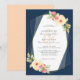 Navy Peach Watercolor Flowers Geometric Wedding Invitation