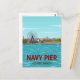 A bright, flat-style illustration of Chicago's Navy Pier, featuring the iconic Ferris wheel, buildings, and the deep blue water of Lake Michigan. Perfect for a summer vacation memory.