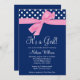 Navy Pink Bow Polka Dot Baby Shower Invitations
