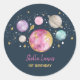 Navy Pink Gold Outer Space Girls Birthday Party Classic Round Sticker