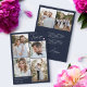 Navy blue wedding thank you card with a clean four photo collage and thank you in a neat signature script on one side with a cute pink heart. On the other side, two more photos and a printed thank you message and your names.