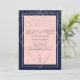 Navy Pink Silver Confetti Geo Border Wedding Invitation