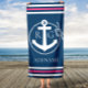 Navy Pink Stripes Anchor Rope Custom Bath Towel