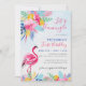 Navy Pink Tropical Wild Forest Flower Birthday Invitation
