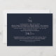 Wedding Details Enclosure Card. Two hotels. Shuttle. Cocktails. Wedding Site. Navy Background. Pink text. Pink and navy striped back with pink floral accents.