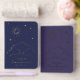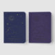 Celestial sky dream journals, one in navy blue and the other in purple, with a celestial design of a shining moon, stars, and clouds printed in gold foil. Personalize the dream journal set with your name and the period they're dedicated to.