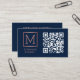 Navy QR Code Logo Monogram Rose Gold Business Card
