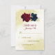 Beautiful wedding response card rsvp featuring dark navy blue and red flowers and gold leaves .