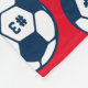 A bold soccer ball pattern fleece blanket featuring an allover design of soccer balls customized with your player's uniform number. The patriotic navy and red colorway delivers classic team spirit. Customize the jersey number to make it uniquely theirs. A perfect gift for soccer players and fans who love traditional team colors.