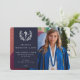 A formal but modern graduation photo announcement to celebrate professional nursing qualifications. Featuring a full-bleed photo with a color overlay and the Asclepius symbol (with the 'RN' abbreviation) surrounded by a laurel wreath. The template text for the graduate’s details is completely customisable, so the font size, style, color and placement can be changed. The back features a solid colored background and template text for a longer message. If you would prefer to include no text on the back, just delete it before ordering. If you would prefer a photo on the back of the card, delete both the colored background and the template text and upload your own photo. The design is available in other colors and with different medical qualifications in my store.