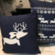 Navy Reindeer Dachshund Christmas Decor Throw Pillow