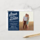 Navy Retro Script Photo Save the Date Postcard