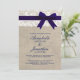Navy Ribbon On Burlap & Lace Rustic Wedding Invitation