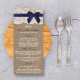 Navy Ribbon On Burlap & Lace Wedding Menu