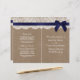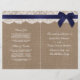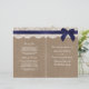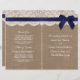 The design features a lovely rustic burlap effect background with a romantic vintage white lace effect trim finished with a stunning navy ribbon with bow.