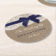 Navy Ribbon On Burlap & Lace Wedding Round Paper Coaster