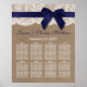 This wedding seating chart design features a lovely rustic burlap effect background with a romantic vintage white lace effect trim finished with a stunning navy ribbon with bow. This wedding table plan can be personalized for your special occasion and would be perfect for any rustic wedding, bridal shower, engagement party, birthday party and much, much more. Matching wedding items can be found in the collection.