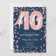 Navy Rose Gold Glitter 40th Birthday Party Invitation