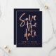 Navy Rose Gold Modern Script Simple Handwritten Calligraphy Wedding Save the Date Cards Customize with your text to make it Uniquely Yours