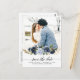 Navy Royal Blue Blush Floral Photo Save the Date P Postcard