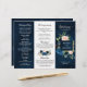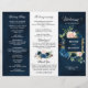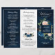 Navy Royal Blue Blush Pink Floral Tri-fold Program