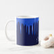 Navy blue background color. Decorated with royal blue faux glitter drips, paint dripping look. Personalize and add a name, written with a modern hand lettered style script.