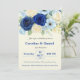 Navy Royal Bue Wedding Watercolor Ivory Flowers Invitation