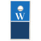 The background features a modern look with a navy, white, and royal blue background and personalized monogram.