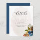 This beautiful floral wedding enclosure card features watercolor navy and rust flowers and your custom text. Use the template to fill in your information. The "Customize further" feature can be used to change the font (size, style, color), and add more lines of text, change the layout and add text to the back of the invitation.