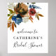 This beautiful welcome sign features deep rust and navy blue flowers. Add your information using the template form. The Customize Further feature can be used to access the advanced editing menu where you can change the font, colors and layout of the text.