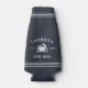 These cool personalized shore house bottle coolers feature your family name on a navy blue background, with your year established and a crab illustration. Rope stripe detailing at the top and bottom completes the design for a rustic nautical look.