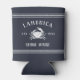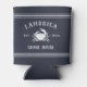 These cool personalized shore house can coolers feature your family name on a navy blue background, with your year established and a crab illustration. Rope stripe detailing at the top and bottom completes the design for a rustic nautical look.