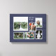 "Navy Rustic Wedding Collage 6 Photograph Script Couple's Name and Date Canvas Print." Your favorite 6 wedding photographs are easy to upload for a customized gift to treasure for a lifetime! Hand painted watercolor navy blue painted wooden background. Ideal for a farm, barn, backyard or farmhouse style wedding style. Art by internationally licensed artist and designer, Audrey Jeanne Roberts, copyright.