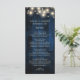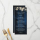 Enjoy your fall wedding with these rustic wedding menus. Elegant and autumn design featuring navy blue wood and string lights on top. These fall menus are perfect for an outdoor, country, or nature theme wedding.