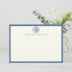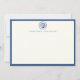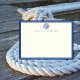 Navy seashell flat correspondence note card. A navy blue and ivory white nautical themed seashell flat note card suitable for any correspondence wardrobe. The card can be personalized with the inclusion of a name. The back of the card is in a modern, elegant and stylish striped ivory white and navy.