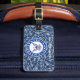Navy Senior Chief Petty Officer luggage tag on digital camo background. Senior Chief Insignia and Gold Chevrons is on one side. The alternate Navy emblem is on the other with customizable text for your name, etc., .
