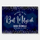 Proudly welcome every guest of your daughter’s Bat Mitzvah party! Display this stunning, modern, stylish, personalized foam core poster board to add to her special day. Sparkly silver faux foil handwritten script, a Star of David and tiny confetti glitter dots, with bold, white sans serif typography, overlay a dramatic, sophisticated navy blue watercolor background. Personalize the custom text with your daughter’s name and date. Available in 7 standard sizes from 10”x8” to 36”x24”. Great for the budding fashionista who loves modern glitter and glam. Add a silver marker for guests to sign and this poster will be guaranteed to preserve cherished memories of her special occasion! Matching and coordinating invites, address labels, stickers, keepsake binders, and other Bat Mitzvah goodies are also available in this trendy and special collection.