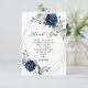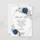 Dark navy blue floral bridal shower thank you card featuring elegant bouquet of navy blue, royal blue , white , silver, champagne ivory, blush color rose , hydrangea, ranunculus, peony, flower buds and sage green eucalyptus leaves and elegant watercolor with round glitter geometric neutral frame. Please contact me for any help in customization or if you need any other product with this design.