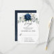 Dark navy blue floral wedding RSVP featuring elegant bouquet of navy blue, royal blue , white , silver, champagne ivory, blush color rose , hydrangea, ranunculus, peony, flower buds and sage green eucalyptus leaves and elegant watercolor with round glitter geometric neutral frame. Please contact me for any help in customization or if you need any other product with this design.