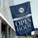 Promote your open house event with this elegant navy blue and silver Real Estate Open House Flag design. Featuring faux silver effects and dark blue background, this custom real estate outdoor sign includes space for your business logo, contact number and website. Professional open house property flag design that will help promote your event and brand to passers-by.