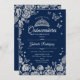 Navy Silver Roses Butterflies Quinceanera Photo Invitation