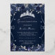 Navy Silver Swirl Scroll Floral Quinceanera Foil Invitation