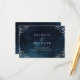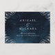 Glam silver color handwriting flourish calligraphy corners on moody navy blue night sky background, elegant and sophisticated, great wedding insert cards for vintage wedding, winter weddings and evening wedding.