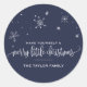 These navy snowflake christmas stickers are perfect for a modern holiday card or gift. The design features falling snowflakes and the festive phrase "have yourself a merry little christmas". Personalize the stickers with your family name.