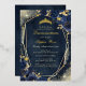 Navy Sparkle Gold Floral Butterfly Quinceanera Foil Invitation